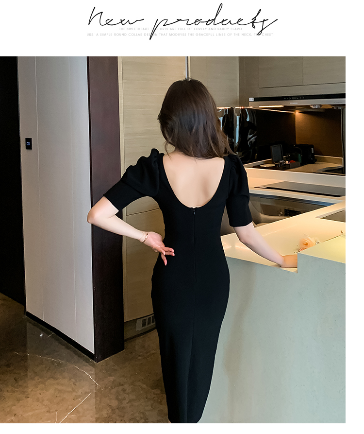 RM18648#法式方领连衣裙2023夏季新款轻熟风复古优雅泡泡袖白色紧身包臀裙