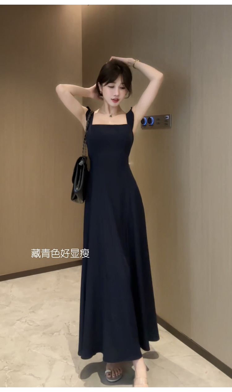 MY15900# 红茶风高级感设计感长裙纯欲性感长袖打底开叉连衣裙女裝貨源...