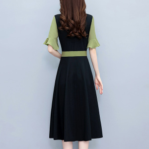 RM19072#假两件套气质修身中长款大码女装胖mm胖妹妹夏季短袖连衣裙阔太太