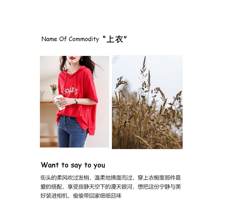 RM19446#宽松大码短袖连帽卫衣女夏装新款数字刺绣遮肉百搭休闲t恤