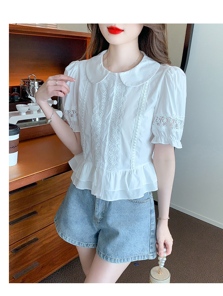 RM19464#夏季新款韩版设计感小众气质娃娃领蕾丝拼接短袖衬衫