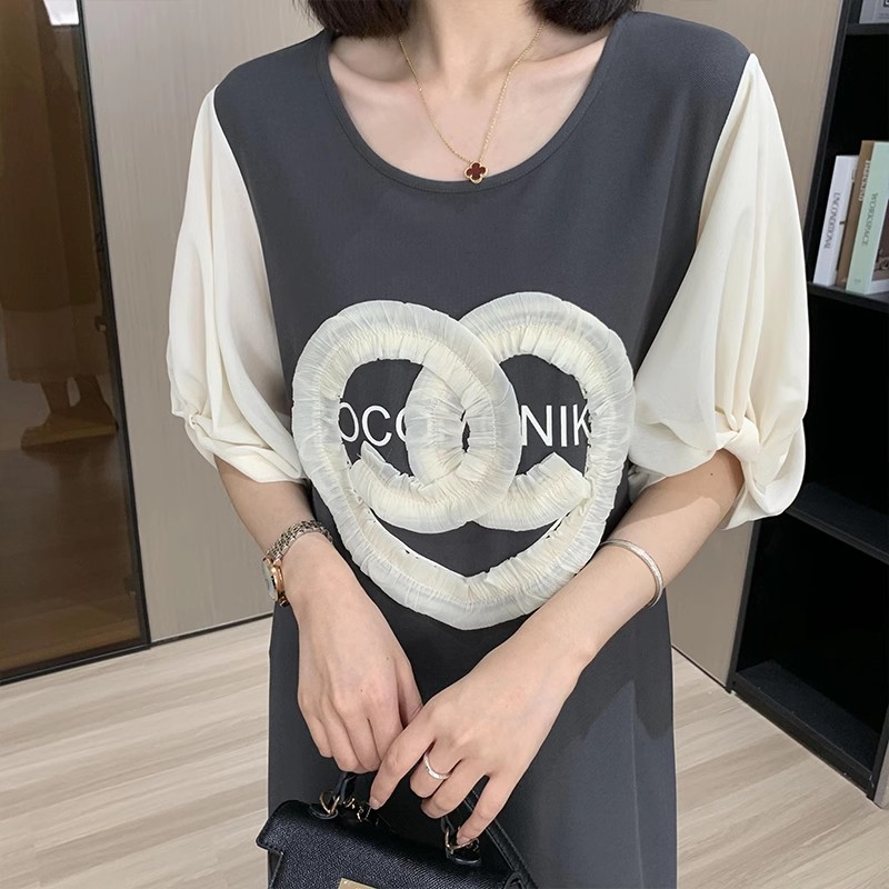 RM19553#设计感爱心拼接连衣裙女2023夏季新款大码胖MM宽松显瘦下摆百褶裙