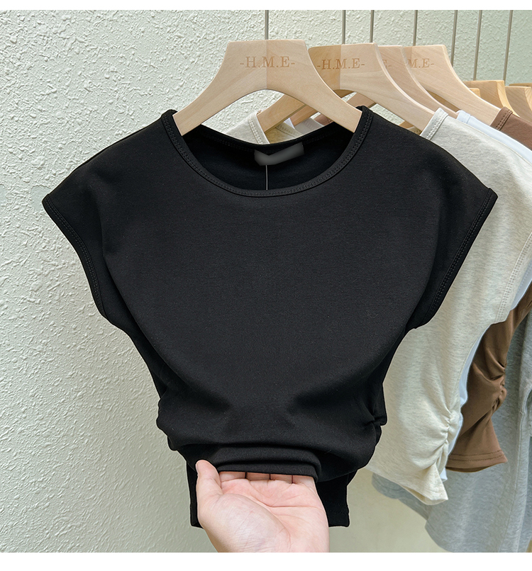 RM19614#法式小飞袖短袖t恤女夏季正肩短款别致设计感小众洋气上衣潮