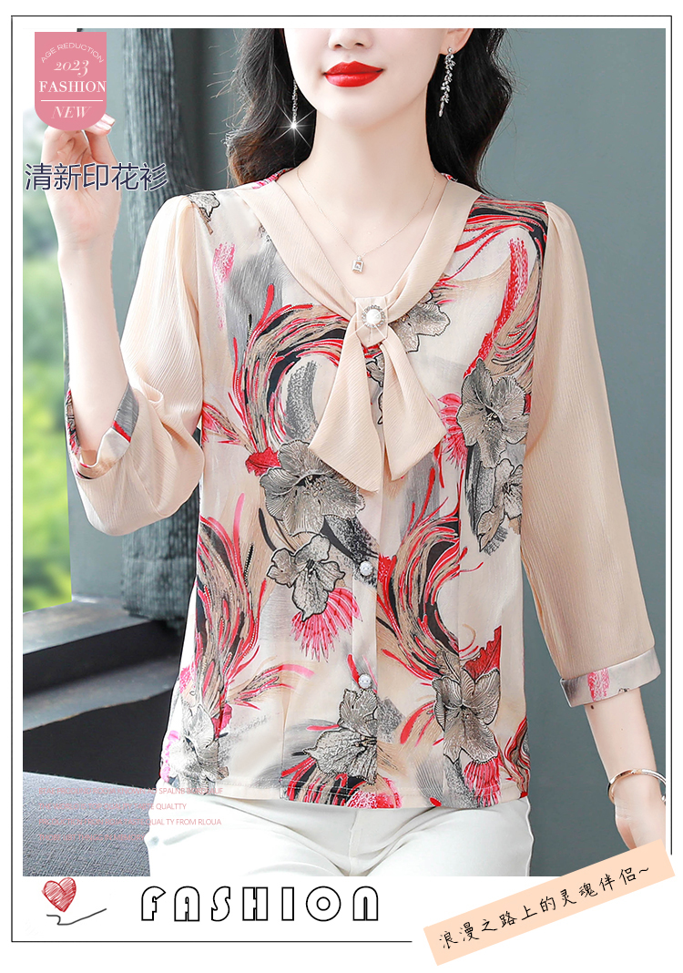 RM19629#雪纺衫新款时尚气质洋气外穿百搭遮肚上衣