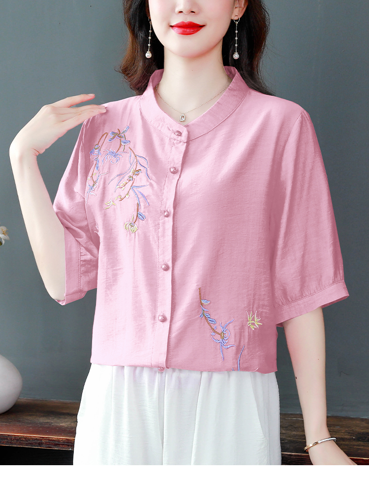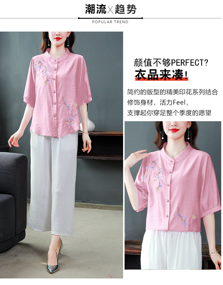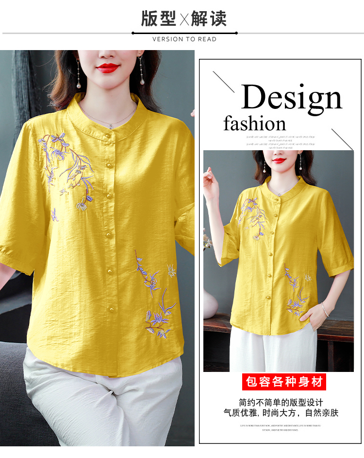 RM19630#棉麻刺绣衬衫2023女夏季新款短袖小衫妈妈棉麻夏季宽松气质上衣