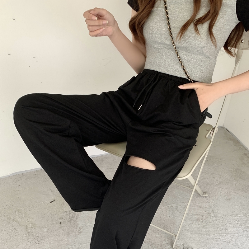 RM19646#韩版阔腿裤女破洞小众长裤拖地裤