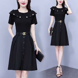 RM11674#大码女装2023夏季新款胖mm设计感拼色中长款气质妈妈连衣...
