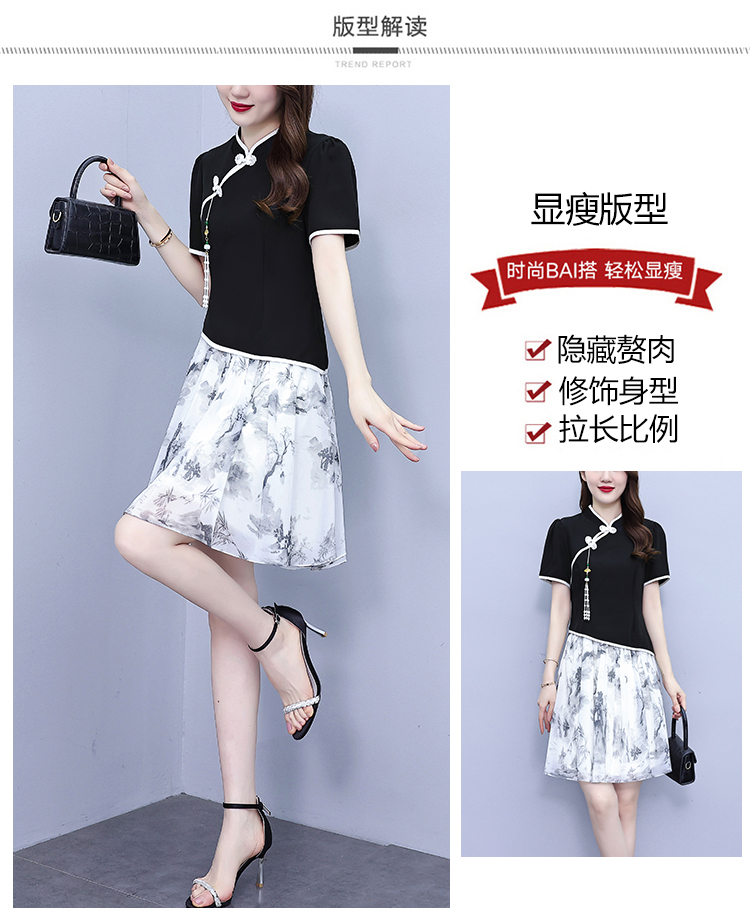 RM19875#大码女装2023年夏季新中式国风改良旗袍上衣+短裙两件套套装