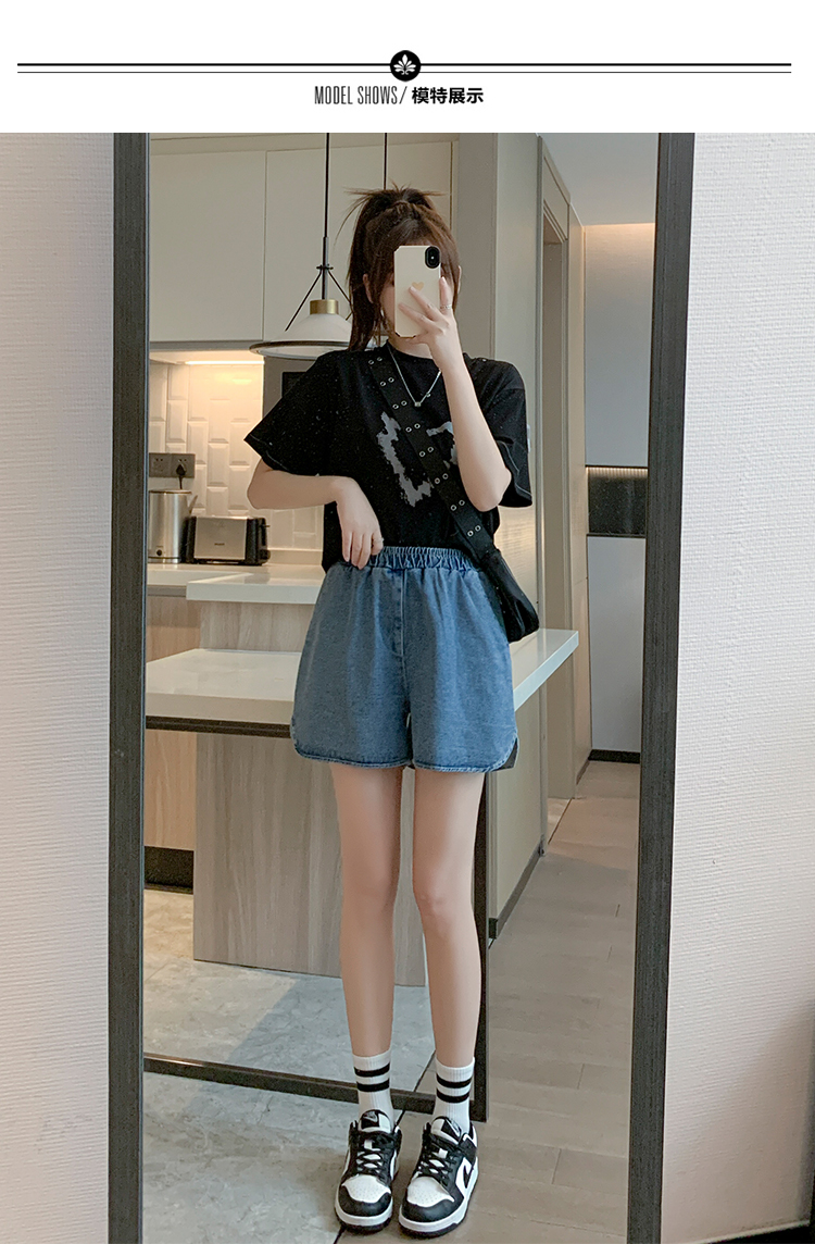 RM19637#夏季牛仔短裤女显瘦松紧腰宽松阔腿胖mm大码薄五分裤开叉中裤