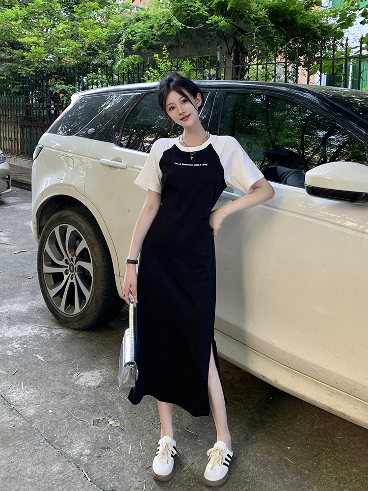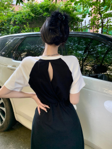 RM19797#大码女装短袖T恤连衣裙女胖MM下新款高级感港味复古chic裙子