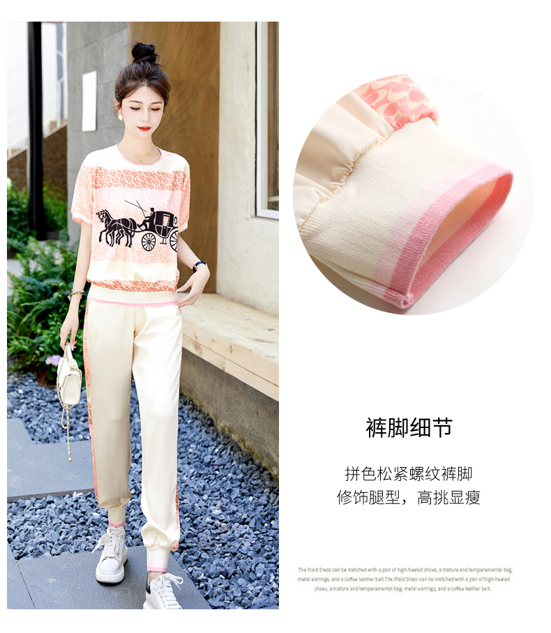 RM20270#欧洲站冰丝休闲时尚套装女新款夏装小个子撞色运动减龄醋酸两件套