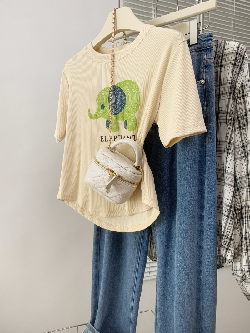 RM20363#夏季韩版新款印花卡通大象宽松短袖T恤女时尚百搭上衣