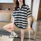 RM20570#朱地条纹POLO T恤夏日新款宽松百搭上衣女