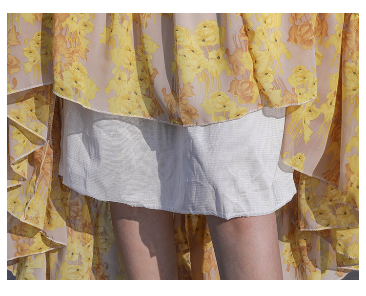 RM20589#夏季新款百褶大摆半身裙拼接雪纺碎花长裙松紧高腰显瘦拖地沙滩裙