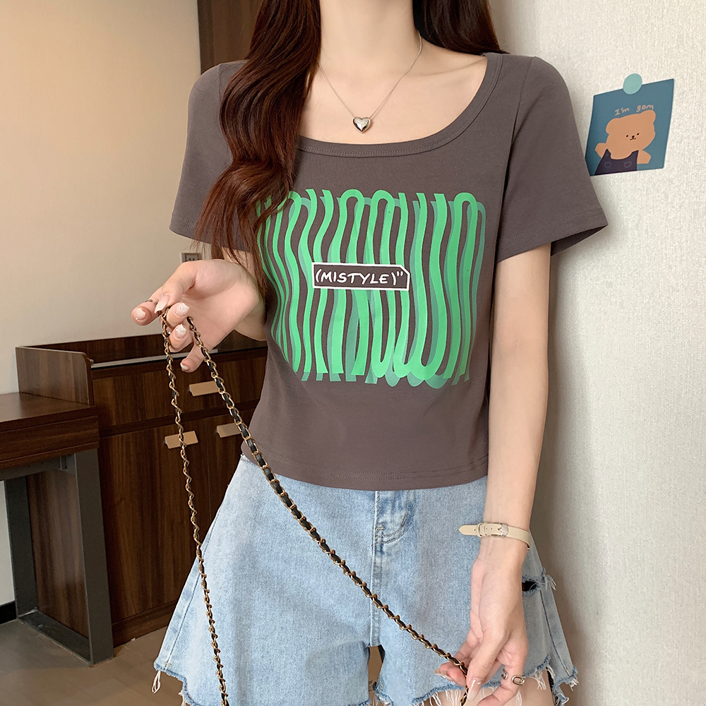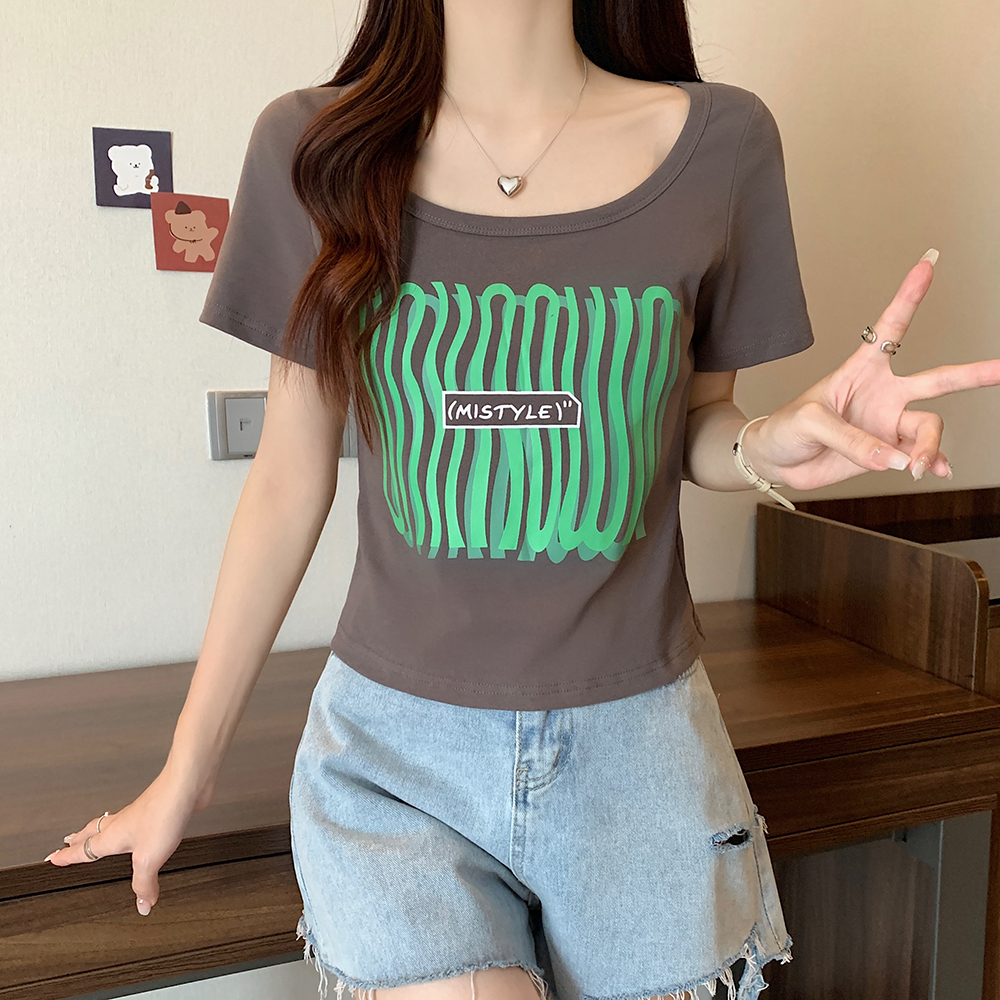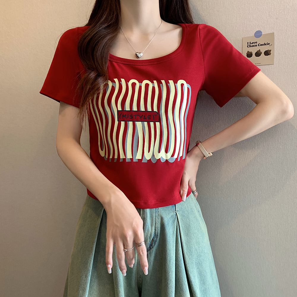 RM20838#大码女装新款胖妹撞色印花宽松显瘦洋气慵懒短袖