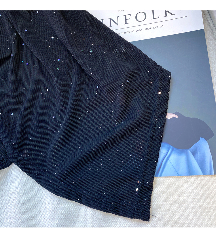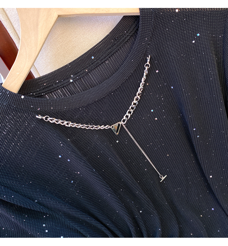 RM20858#夏季新款胖mm时尚百搭显瘦链条亮片折皱T恤短袖上衣潮