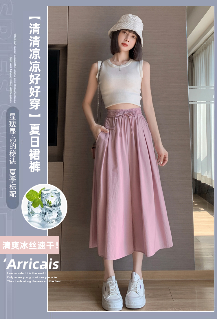 RM20922#速干冰丝裙裤女2023夏季高腰显瘦垂感宽松休闲慵懒阔腿八分裤