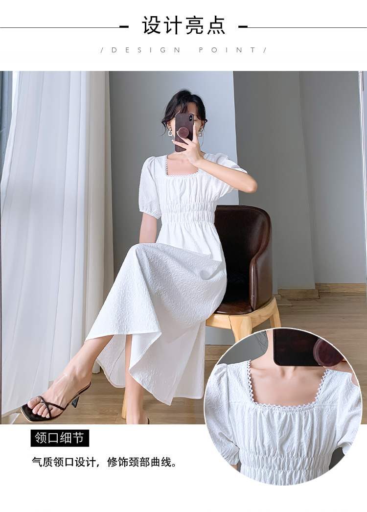RM21928#短袖夏季连衣裙方领气质仙女裙