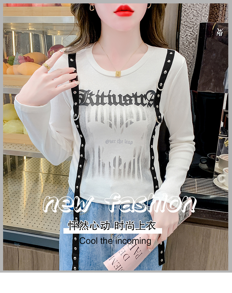 RM22108#街头百搭短款长袖T恤女2023秋季新款小众设计感修身显瘦印花上衣