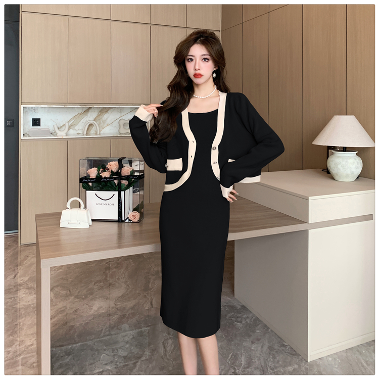 RM22316#韩版ins风简约撞色毛衣外套开衫+吊带连衣裙针织小香风两件套高级
