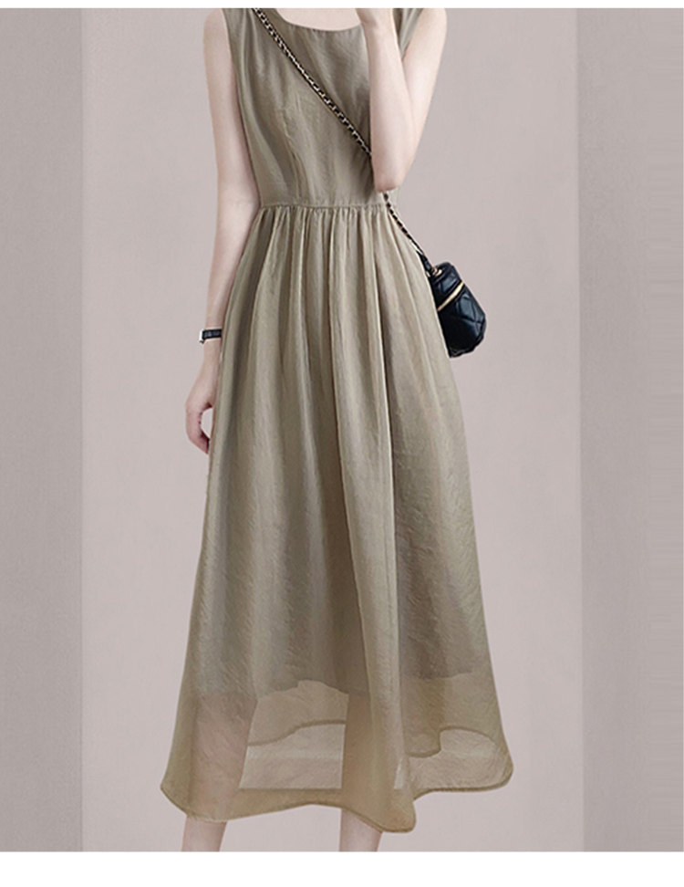 RM22347#连衣裙甜美超修身X型长裙无袖纱套头夏季纯色
