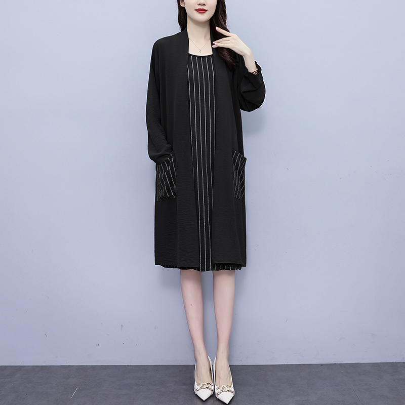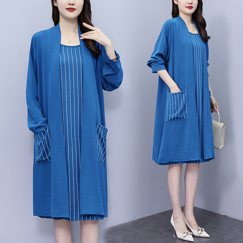 RM22475#洋气假两件连衣裙中年妈妈春秋长袖裙子宽松大码2023年新款中老年