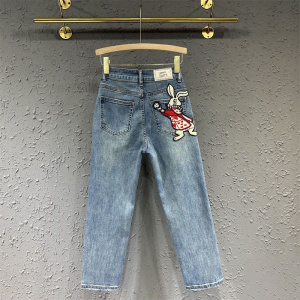 RM22490#新款小个子新年兔子牛仔裤高腰显瘦弹力八分裤九分裤