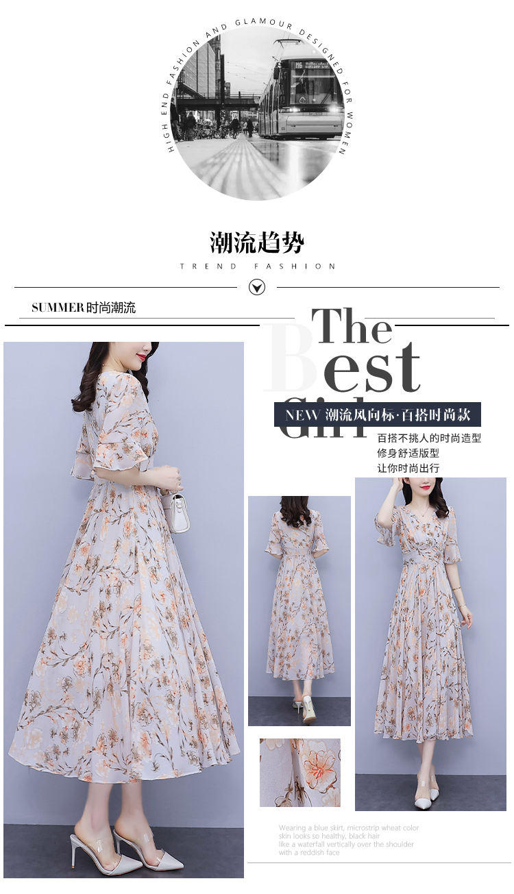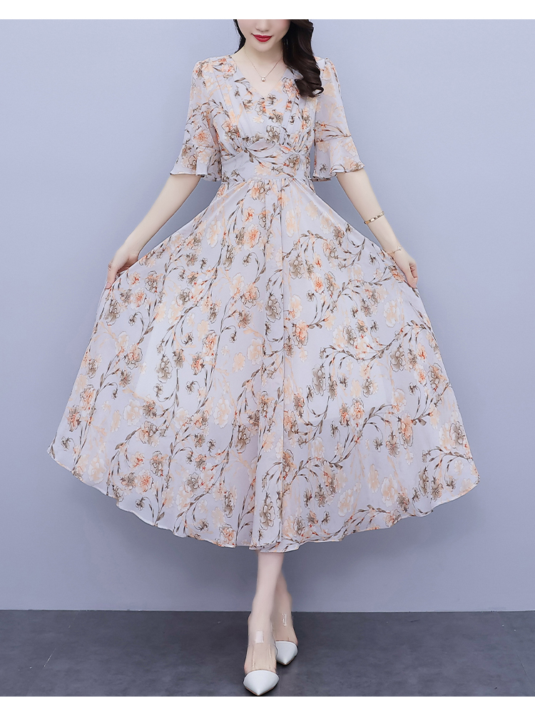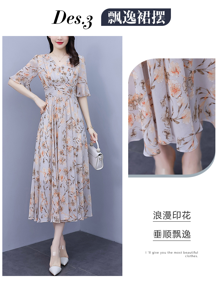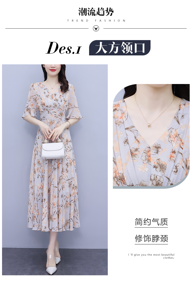 RM22568#新款雪纺碎花连衣裙女夏洋气气质短袖V领法式长裙夏装裙子