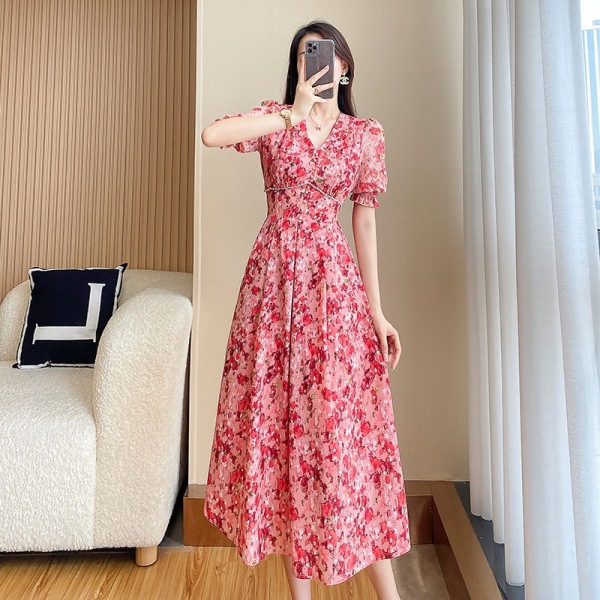 RM23324#茶歇法式碎花连衣裙女夏2023年夏季新款名媛气质显瘦长裙子高级感