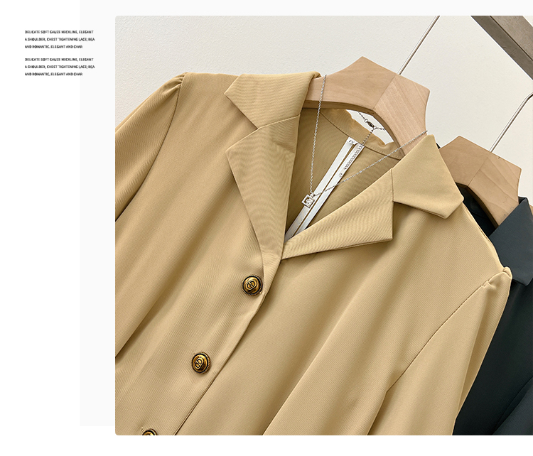 RM23385#新款长袖西装单排扣连衣裙子赫本风法式气质高级