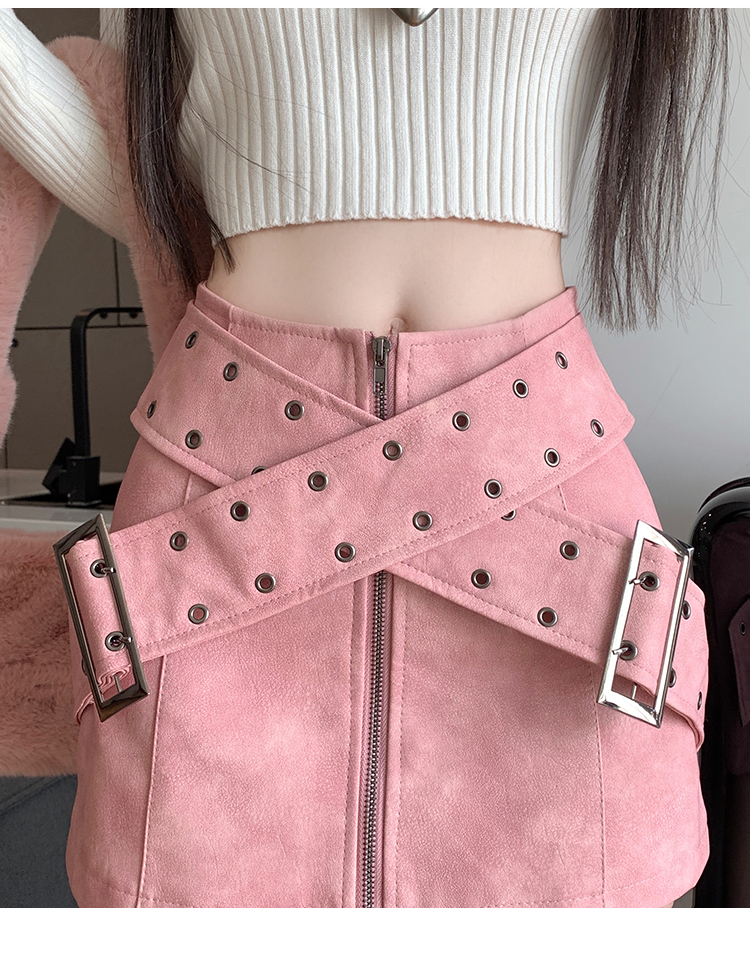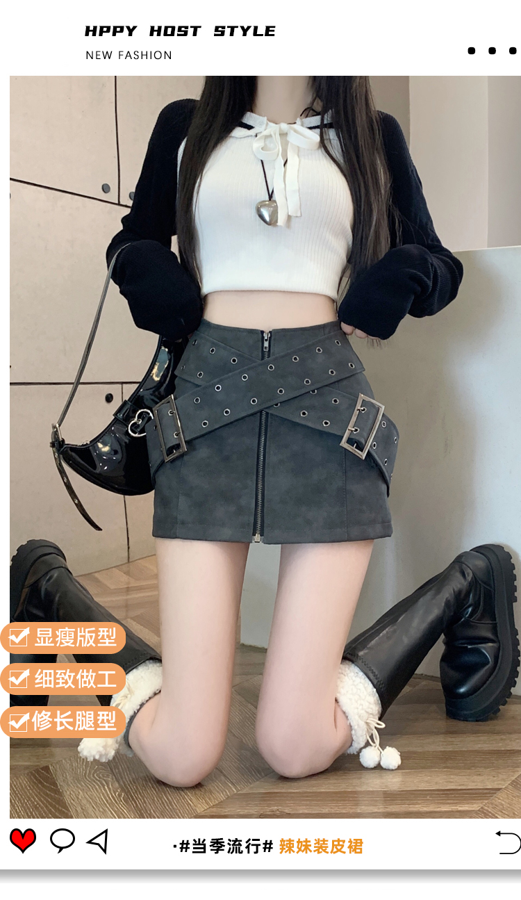 RM23617#辣妹水洗做旧pu皮半身裙女2023秋冬性感复古低腰半裙包臀短裙
