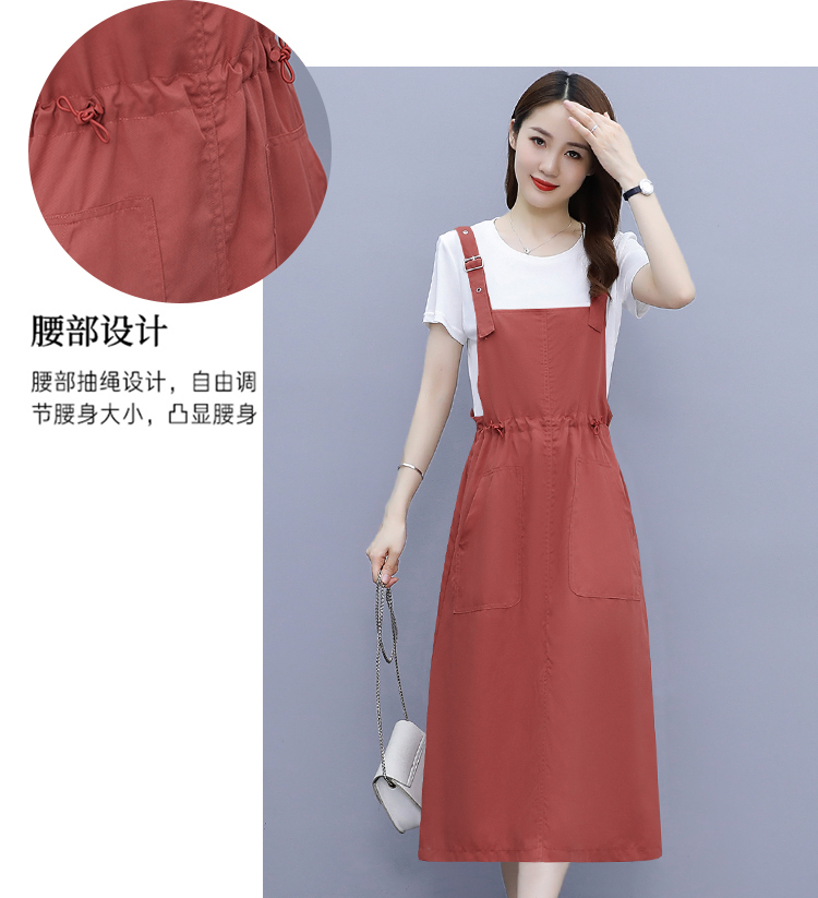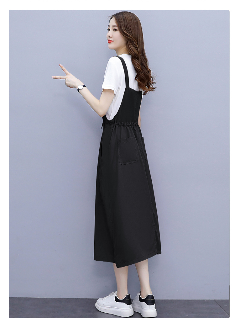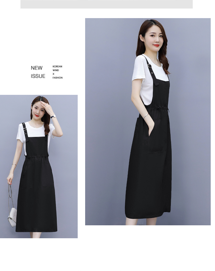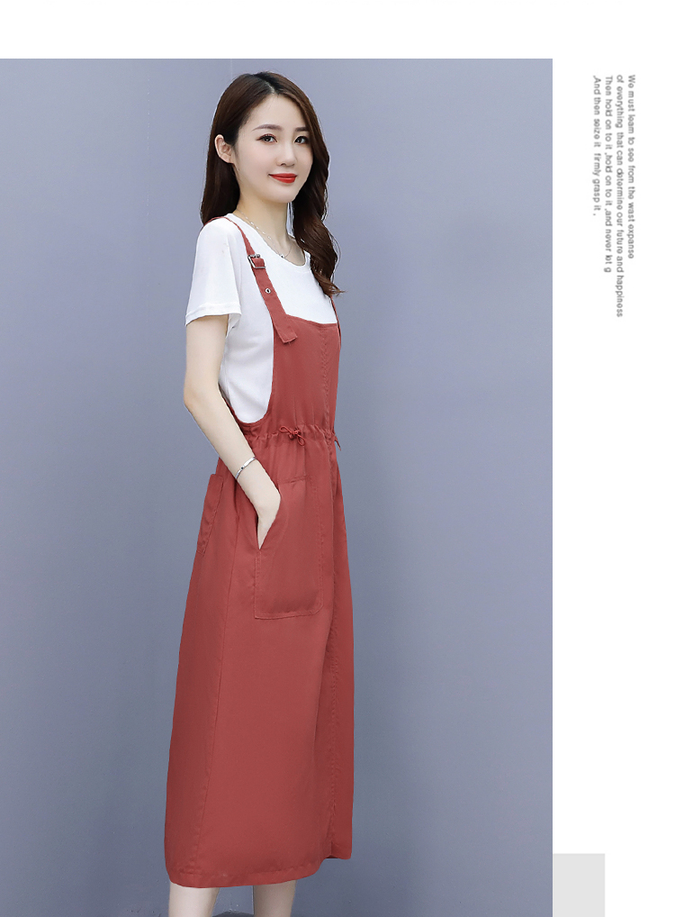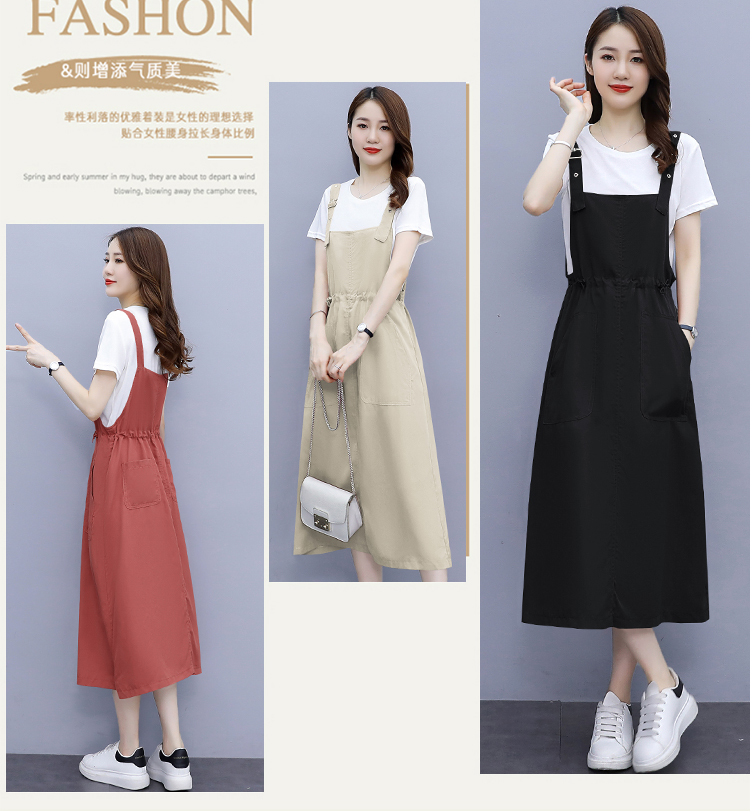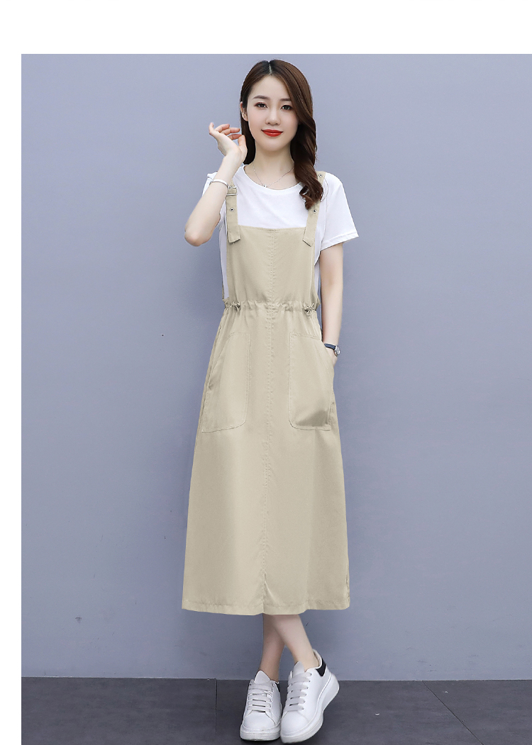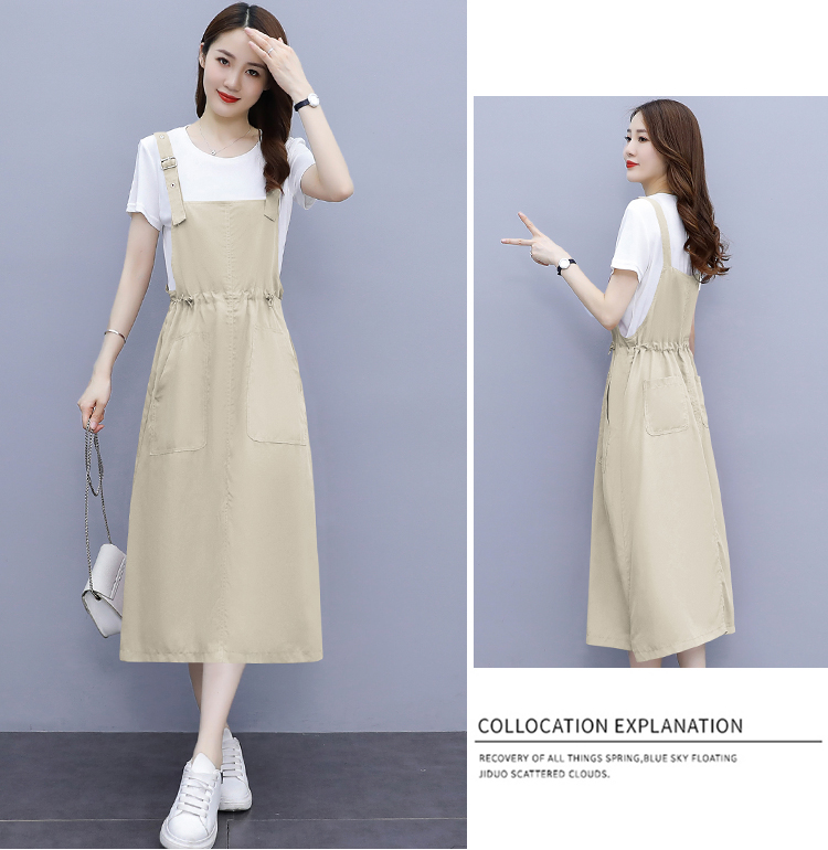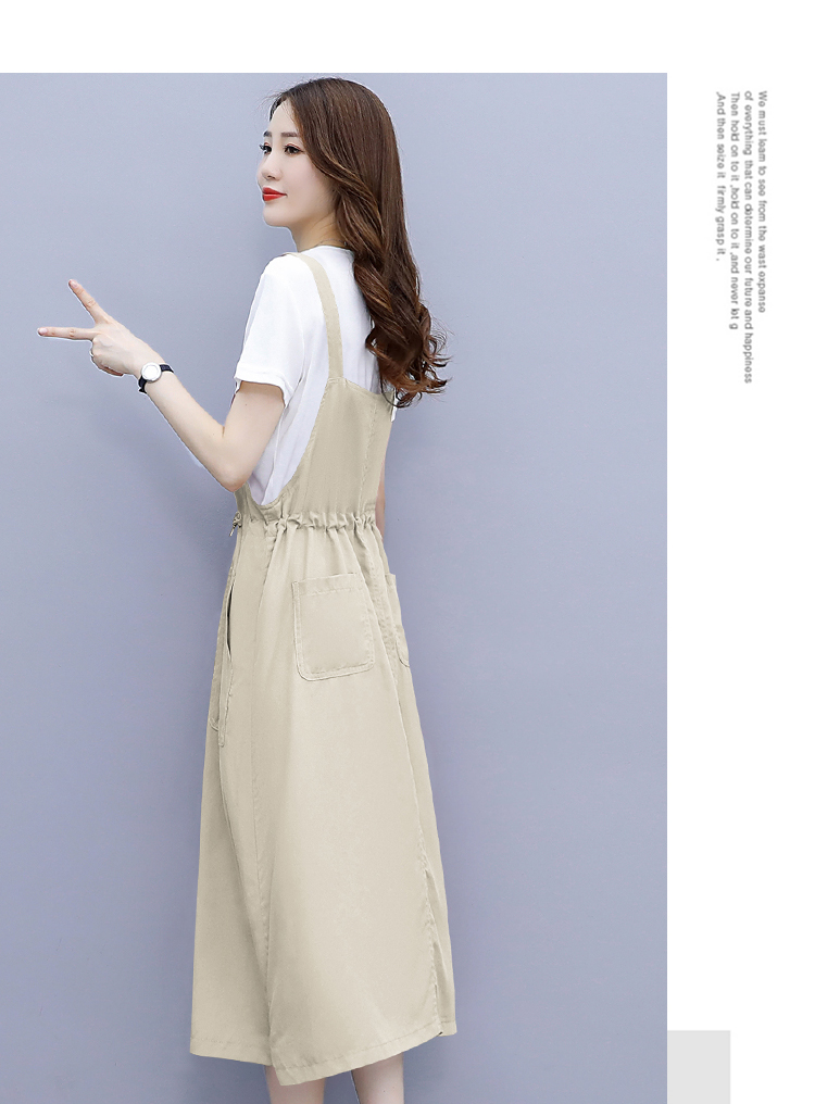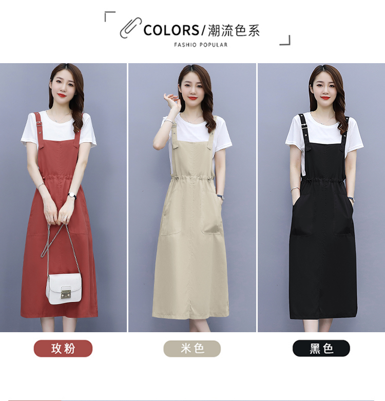 RY1797#背带裙两件套夏季女2023年新款宽松系带时尚减龄中长款吊带连衣裙