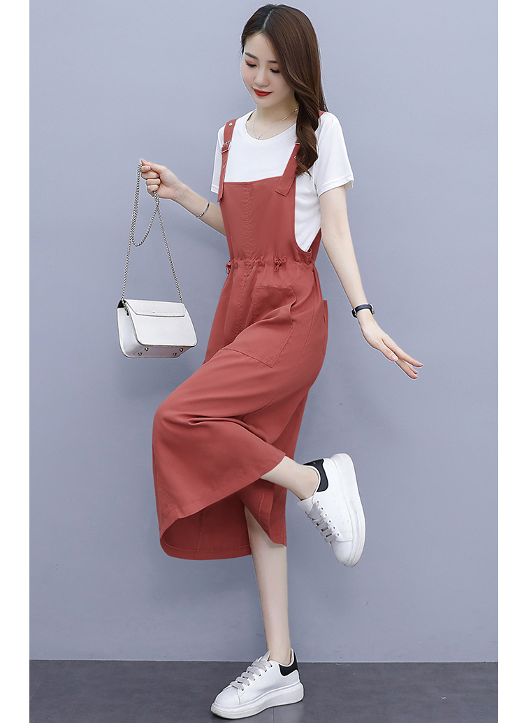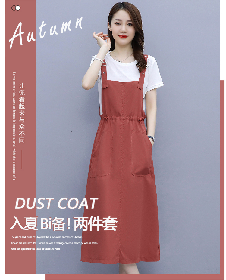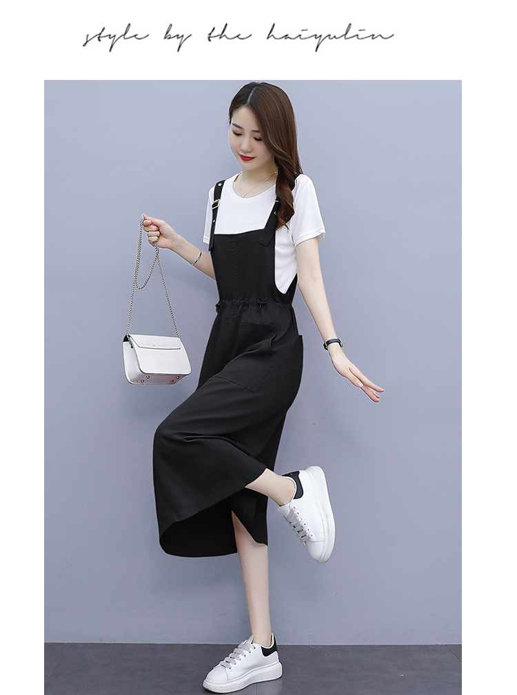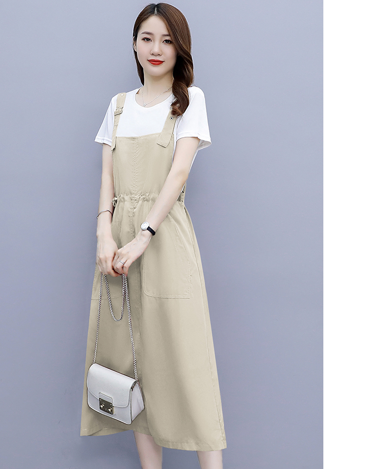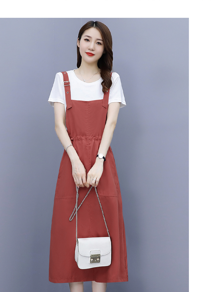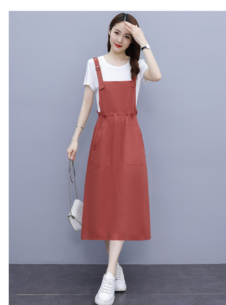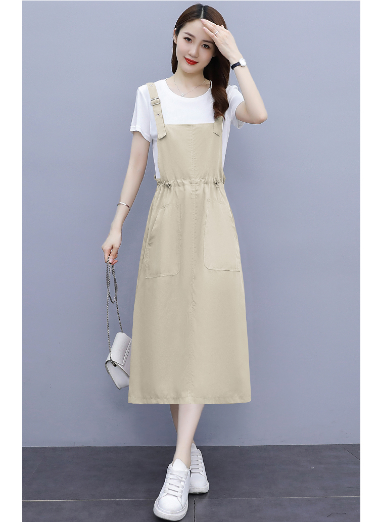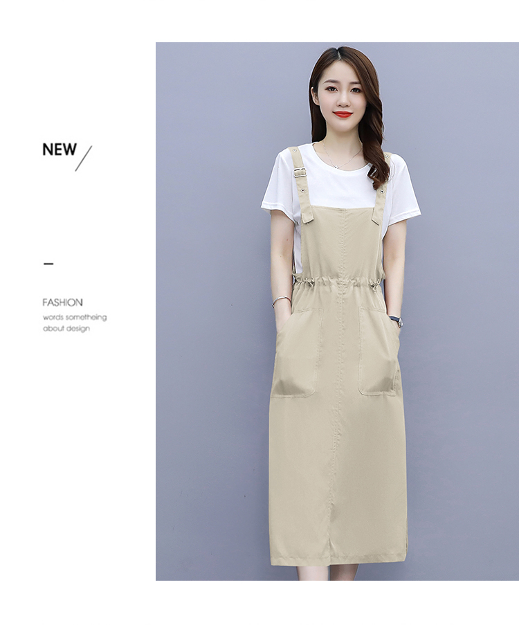 RY1797#背带裙两件套夏季女2023年新款宽松系带时尚减龄中长款吊带连衣裙