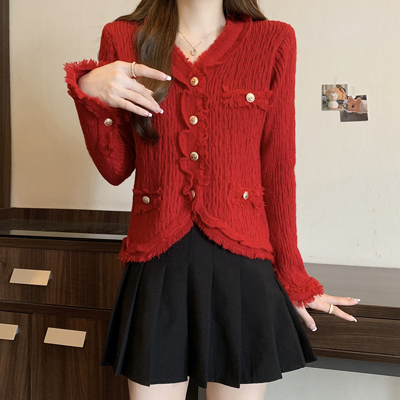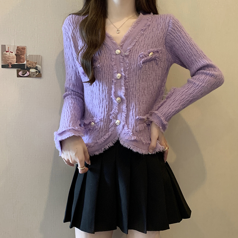 RM23769#大码女装秋冬新款设计感小香风针织上衣遮肉显瘦百搭毛衣开衫