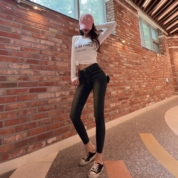 RM23771#韩版新款复古蓝色显腿瘦小脚牛仔裤