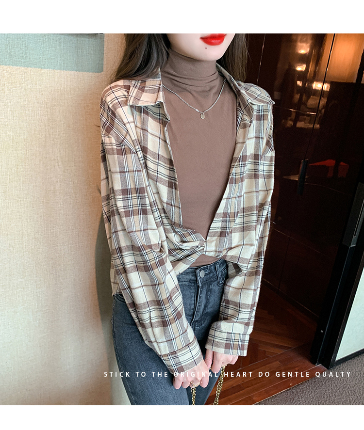 RM23949#秋季爆款扭结复古格子衬衫女立领背心两件套送链条