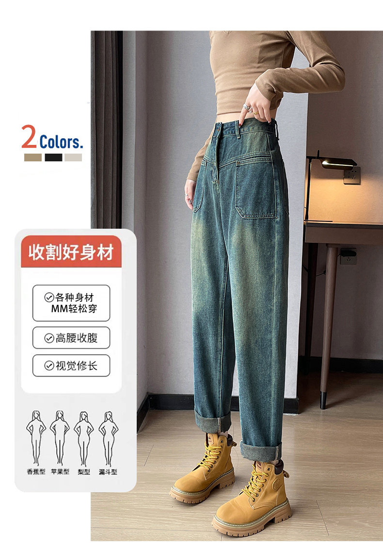 RM24025#哈伦牛仔裤女春秋季2023年新款高腰显瘦复古宽松直筒萝卜老爹裤子