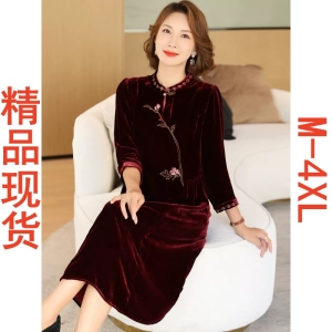 RM24038#新款婚宴真丝丝绒连衣裙女喜婆婆桑蚕丝裙子妈妈装刺绣气质春秋