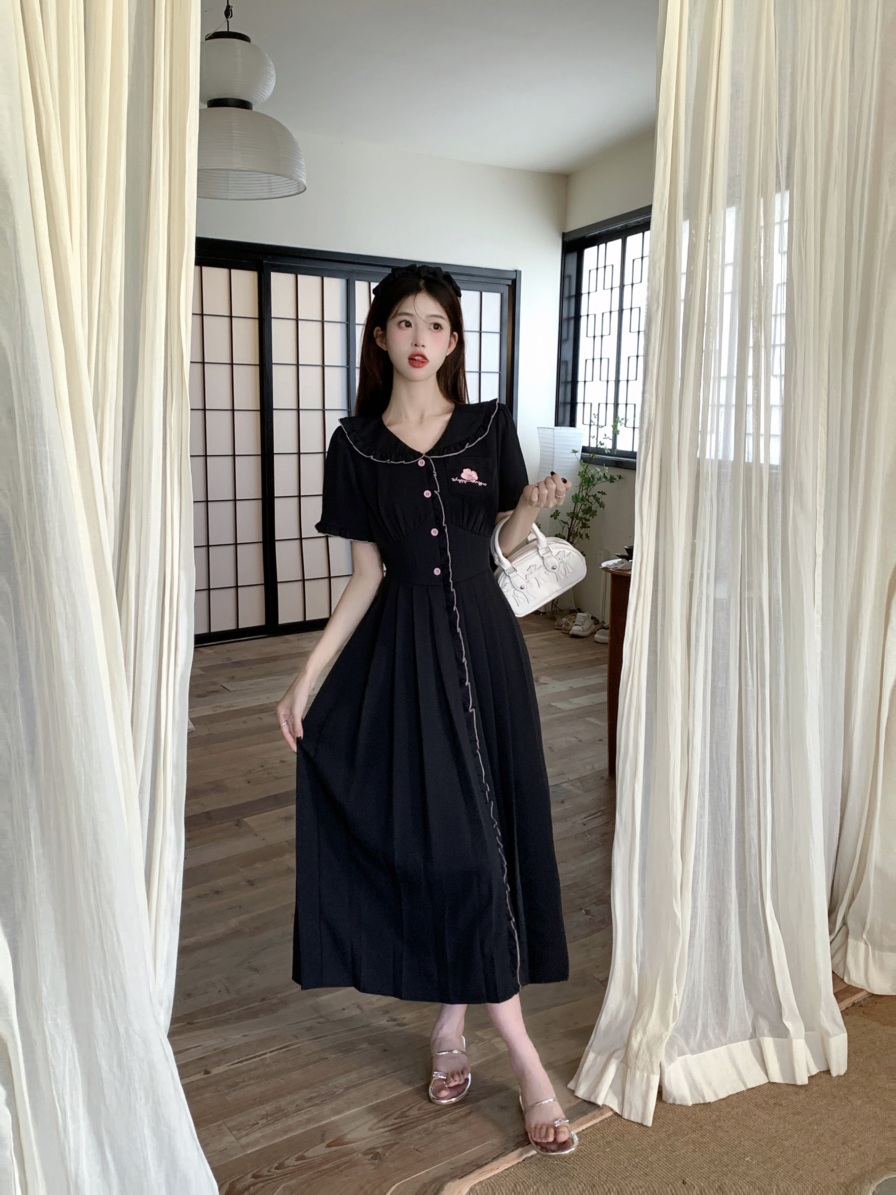 RM24049#大码女装洋装刺绣娃娃领显瘦气质连衣裙