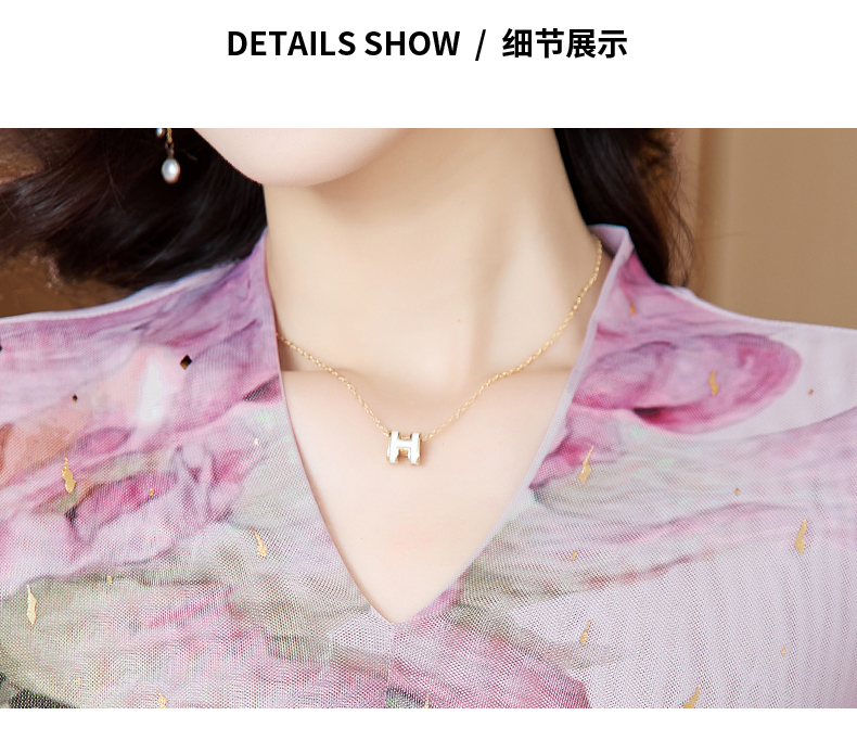 RM22388#夏季皱褶交叉V领时尚短袖网纱印花时尚修身显瘦打底衫潮