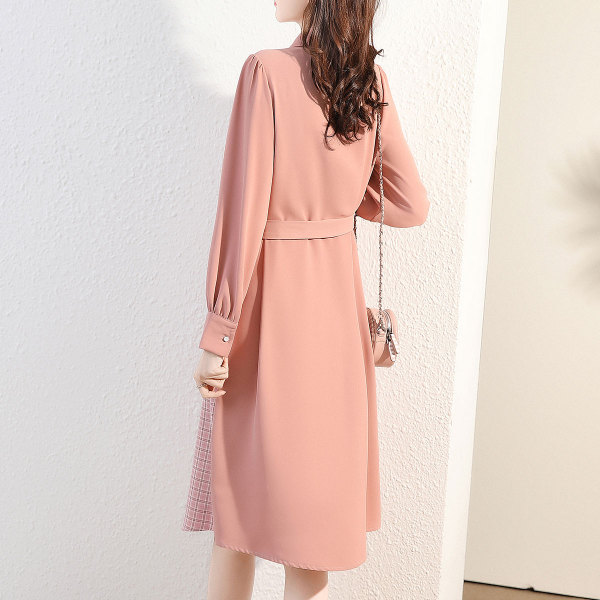 RM24146#新款时尚拼接撞色收腰显瘦中长款知性女式连衣裙女
