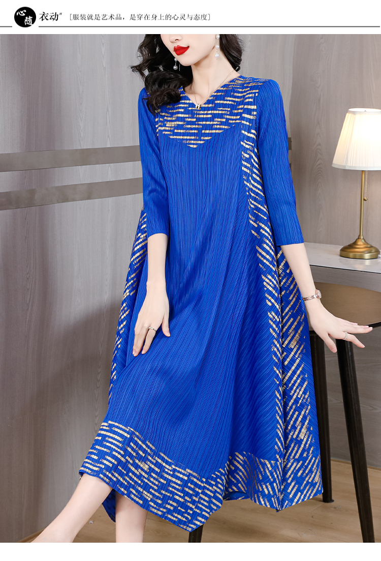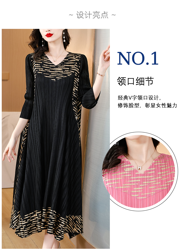 RM24149#三宅褶皱连衣裙女秋季2023新款优雅气质显瘦A字裙遮肚显瘦妈妈群