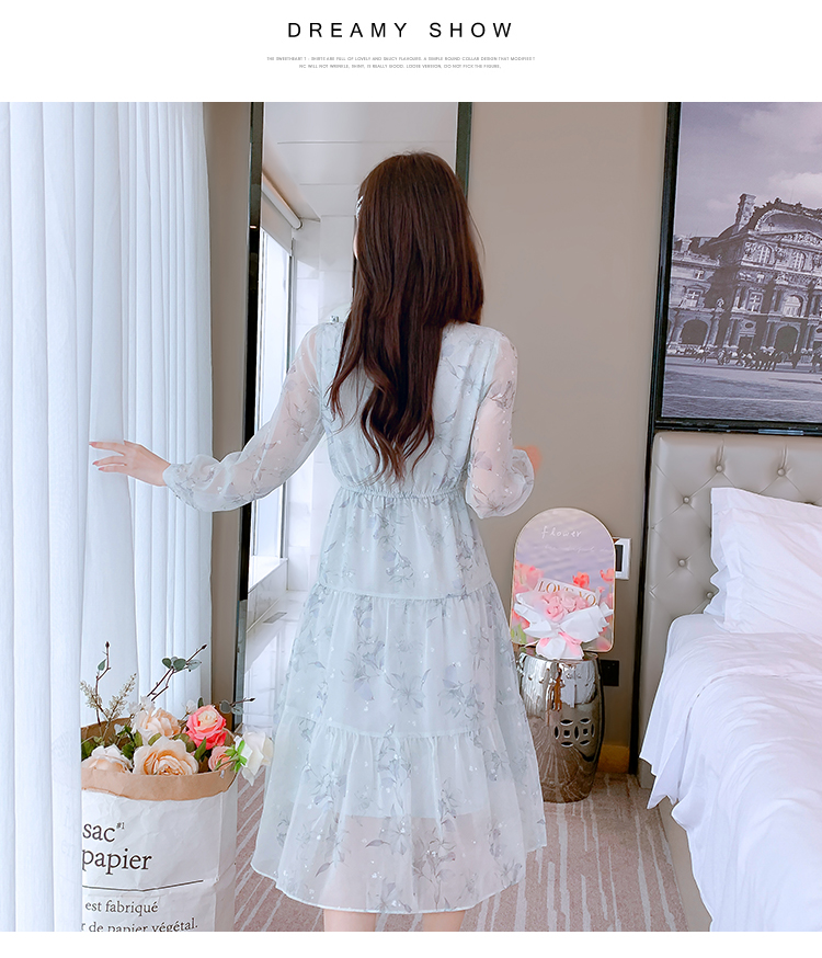 RM24191#法式茶歇碎花连衣裙女2023秋季小个子收腰显瘦印花新款裙子