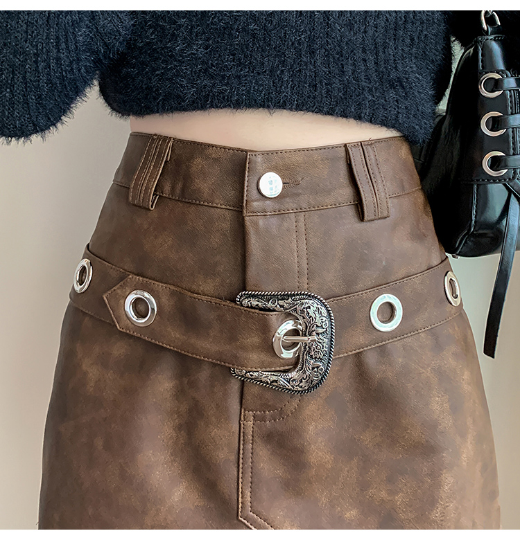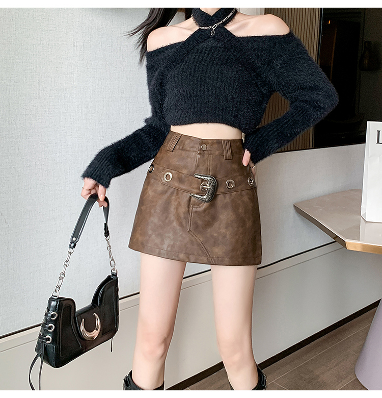 RM24202#PU皮裙半身裙秋冬2023年新款辣妹皮短裙高腰显瘦A字裙