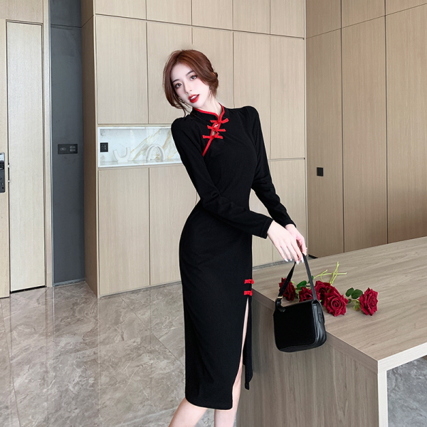 RM24230#名媛气质旗袍连衣裙修身复古开衩打底裙