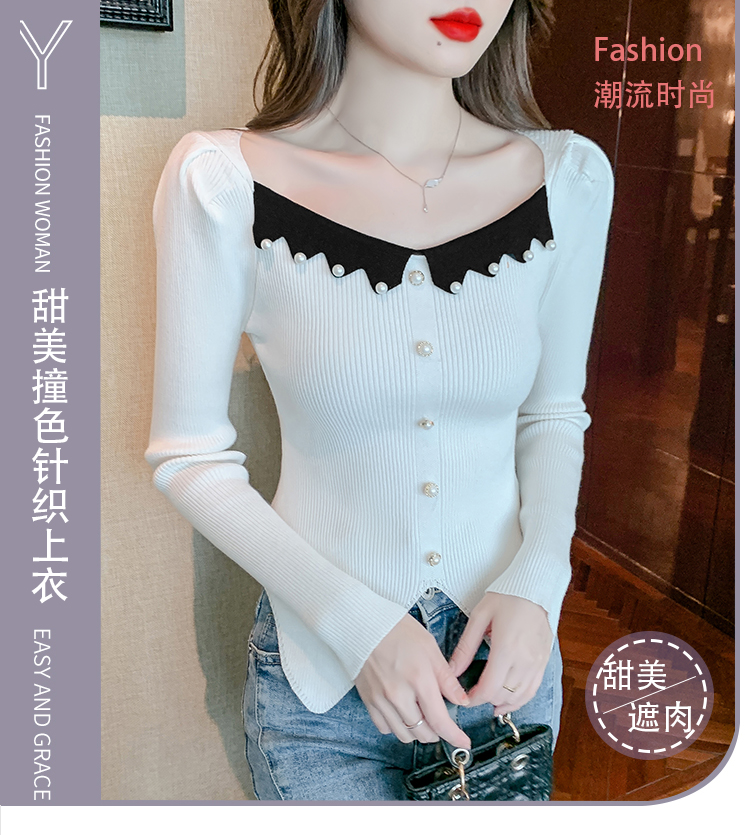 RM24273#新款经典撞色标准长袖修身针织衫小香风毛衣