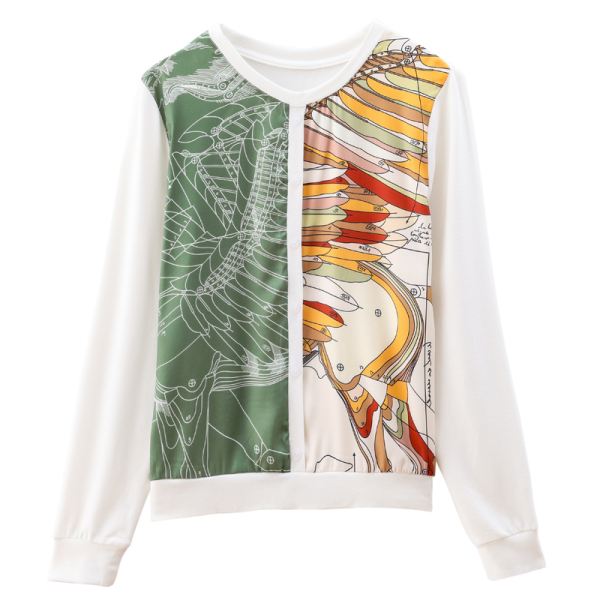 RM24283#新款针织女长袖2023早秋新款高端缎面印花套头毛衣休闲上衣