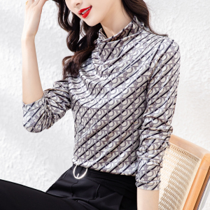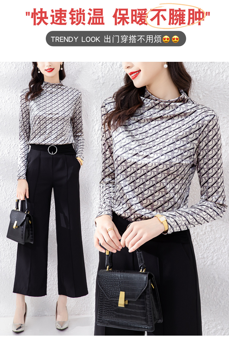 RM24297#高级金丝绒打底衫女2023秋冬新款时尚印花立领内搭长袖上衣