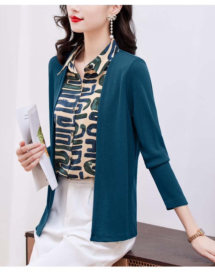 RM24302#假两件长袖实拍2023新款洋气百搭衬衫欧货拼接上衣外套