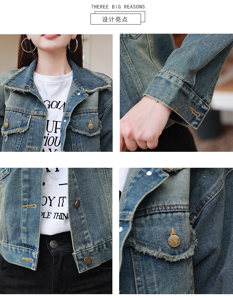 RM24310#韩版浅蓝色设计感牛仔短外套女秋季新款长袖复古夹克小个子上衣